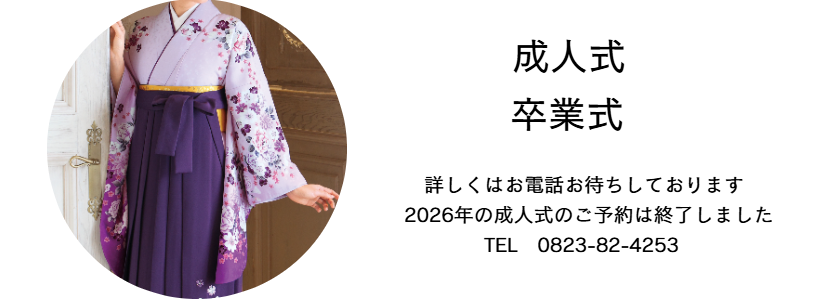 レンタルをご希望の方は貸衣装nijo(二条)をご紹介させていただきます。持ち込みも可能です。